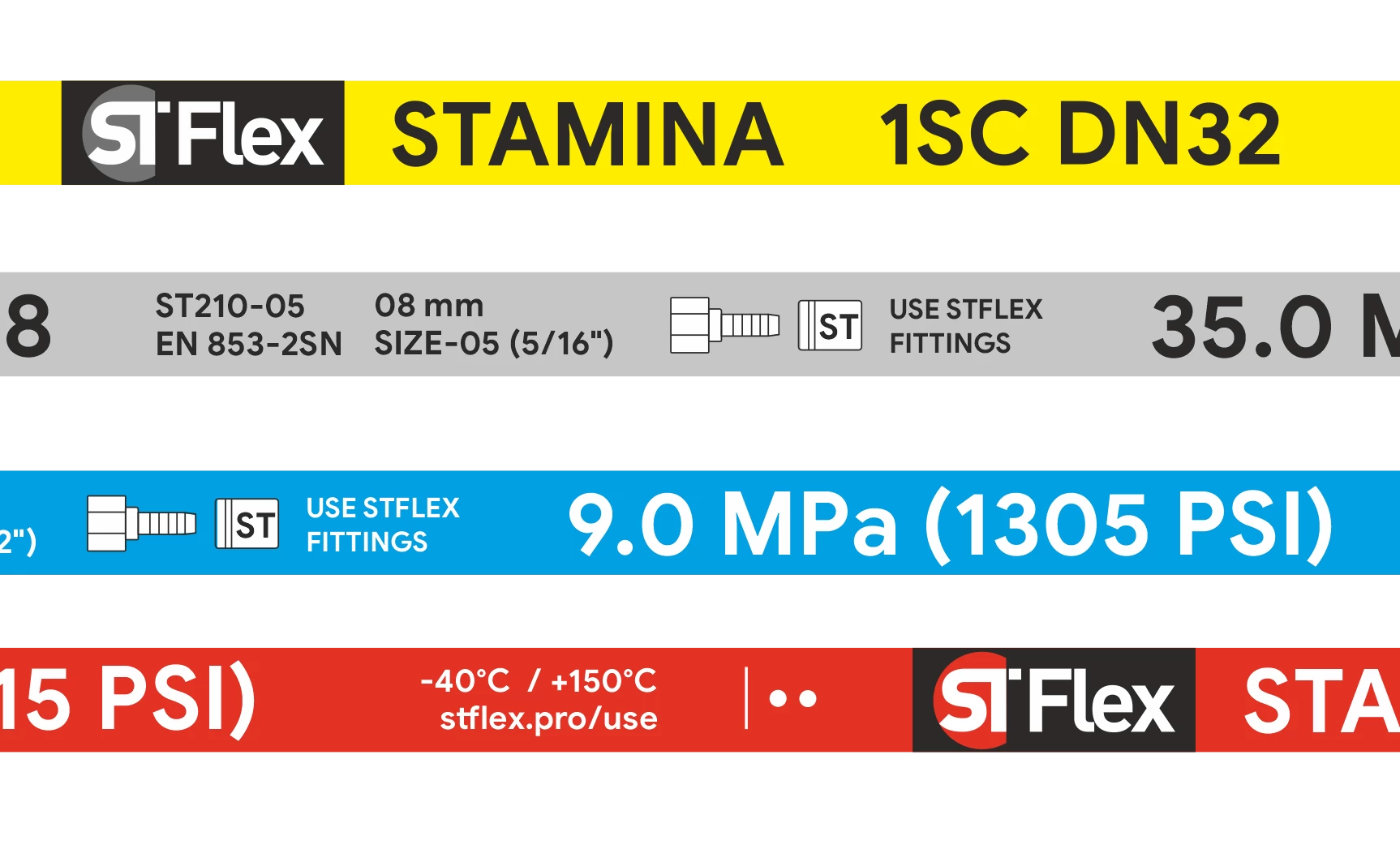 В маркировке указывается максимальное рабочее давление для каждого рукава, так же они приведены в каталоге и на сайте Stflex.