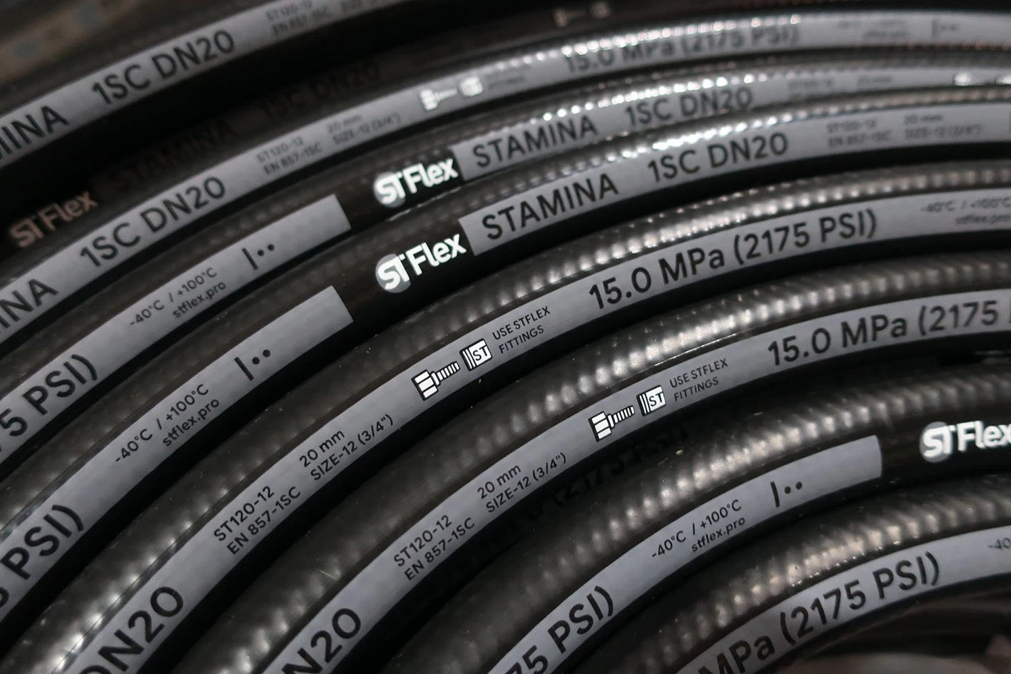 Рукава высокого давления, изготовленные по ЕN 857 (европейские), больше распространены в грузоподъемных машинах. Это оплеточные шланги с минимальным радиусом изгиба (гибкие).