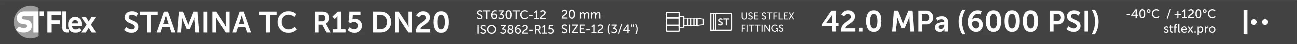 | ST630TC-12 Код заказа | 20 Внутренний диаметр: DN | 3/4 Внутренний диаметр: дюйм | -12 Внутренний диаметр: размер | 36,1 Наружный диаметр: мм | 420 Рабочее давление: бар | 6000 Рабочее давление: psi | 1680 Разрывное давление: бар | 24000 Разрывное давление: psi | 240 Радиус изгиба: min, мм | 1,50 Вес: кг/м | ST00621-12 Муфта | – Складская позиция | |
